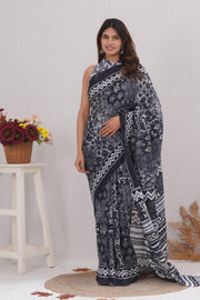 Mulmul Cotton Saree with Hand Block Print - Shivanya Handicrafts Women's Traditional Indian Wear